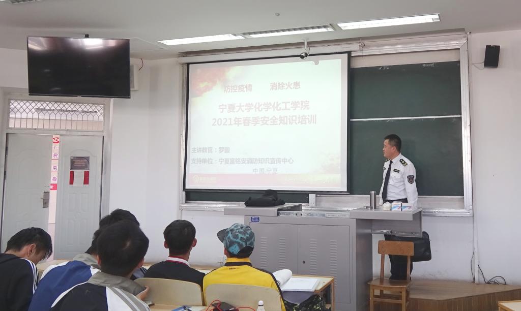 【宁夏大学新闻中心讯 化学化工学院】4月12日,化学化工学院举办消防知识讲座和消防演练,讲座由宁夏富铭安消防知识宣传中心罗毅教官担任主讲。