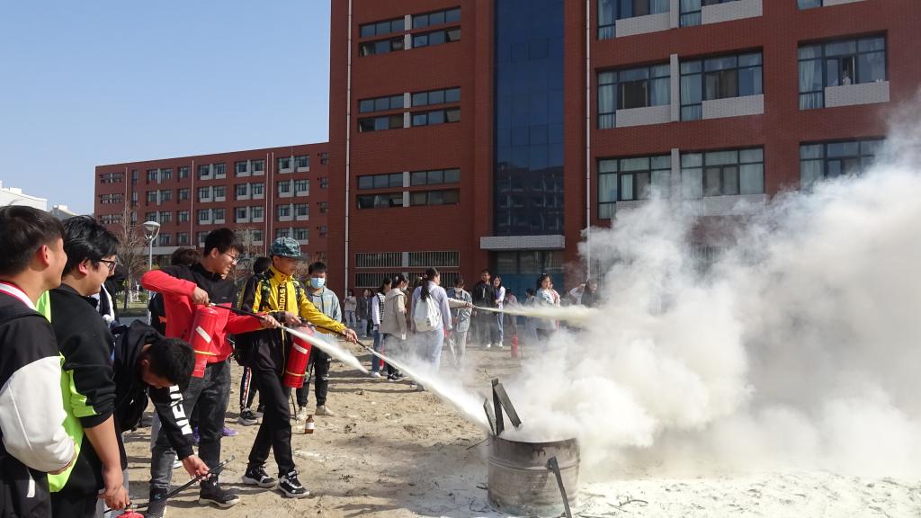学生还在教学楼进行了消防逃生演练,罗教官亲自为大家演示了各种工具的使用方法,教授了学生灭火和逃生自救的技能。在灭火演练中,学生纷纷上场进行“灭火”实践。