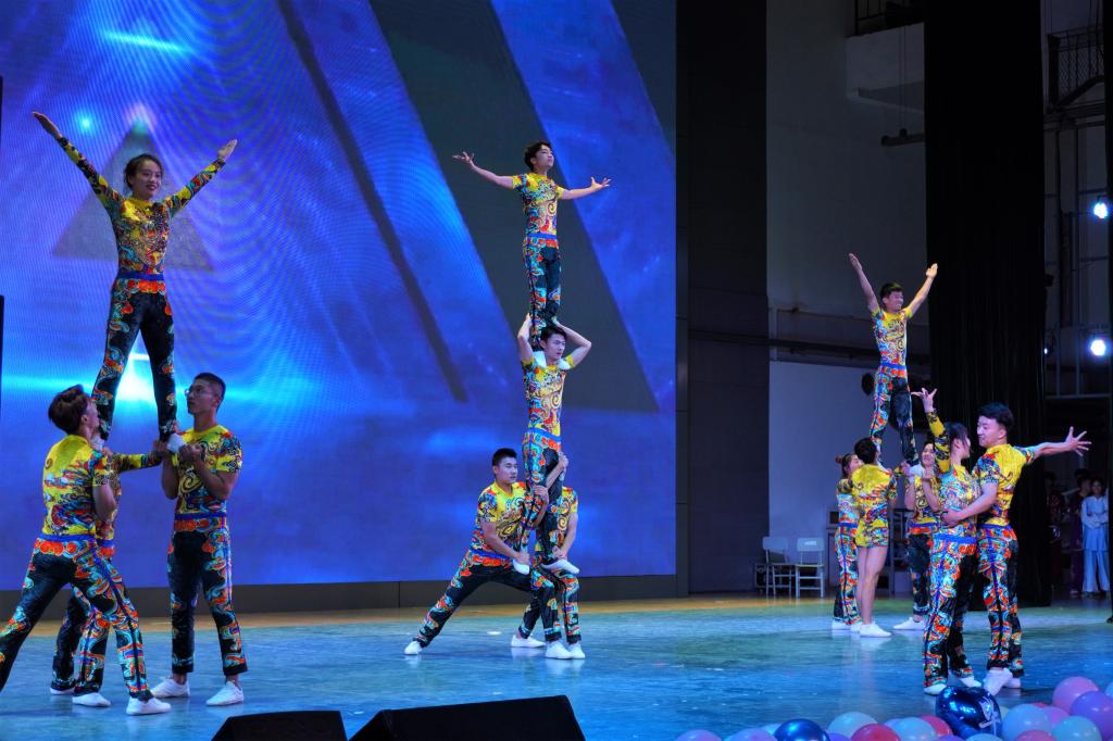 晚会首先对优秀学生及先进集体进行了表彰,肯定了获奖学生的成绩与贡献,激励学院全体学生向榜样学习。晚会分为三个篇章,“展体育精神”中体育学院健美操队、武术队、运动队带来的歌曲和舞蹈展现了在青春年华里正绽放着的耀眼光芒。“颂百年风华”中表演或慷慨激昂,或低沉迂回,通过灵活多样的表现形式,真挚的感情表达,真实鲜活的事例案例,阐述自己对于初心使命的理解,歌颂党的光辉历程和伟大成就,抒发对党的无限深情与满腔热爱,诵读歌唱出人民爱党、爱国、爱社会主义的深厚情怀。“忆青春飞扬”中一首首熟悉的旋律,一张张全家福中所映出的笑脸,使时间在晚会中永恒,温馨片刻也将永远被时光所铭记。