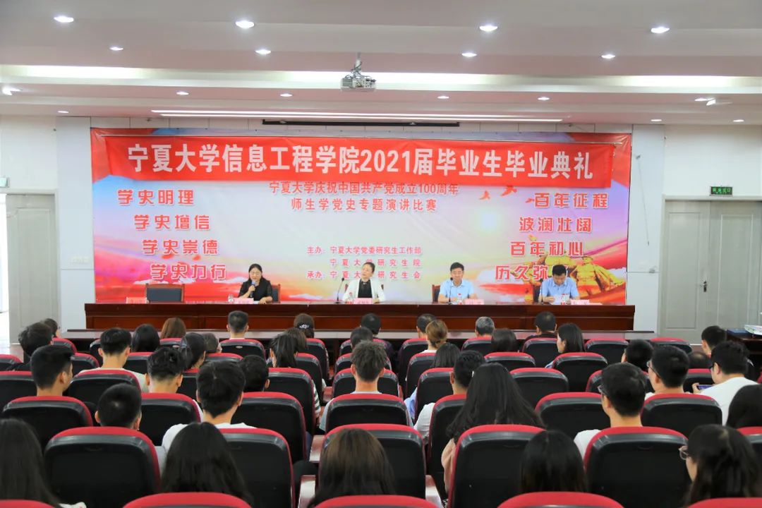 【宁夏大学新闻中心讯 信息工程学院】6月16日,信息工程学院在怀远楼二楼报告厅隆重举行2021届毕业生毕业典礼。学院党委书记武林波,院长冯锋,副院长杨军出席典礼,学院各系、中心主任,三办主任,师生党支部书记,研究生导师,辅导员及全体2021届本科、硕士毕业生参加。毕业典礼由学院党委副书记张振霞主持。