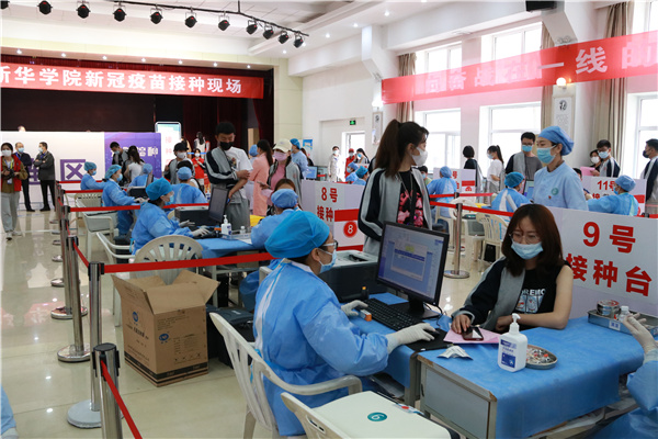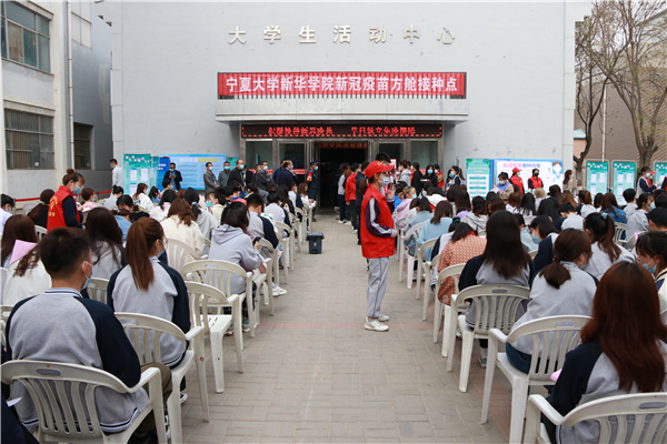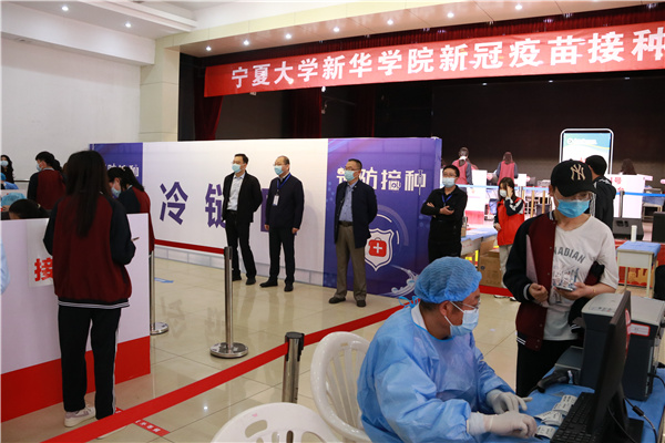 【宁夏大学新闻中心讯 新华学院】为抓好常态化疫情防控、筑牢免疫屏障、共建平安校园,4月22日,按照银川新冠疫苗接种工作相关要求,本着“科学指导,安全有序,应接尽接”的工作目标,新华学院在大学生活动中心开展动新冠疫苗集中接种工作,西夏区卫健委、银川市第二人民医院和朔方路卫生服务中心共同负责现场医疗保障工作。