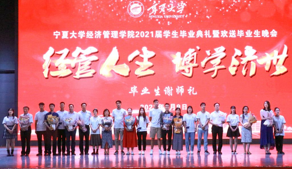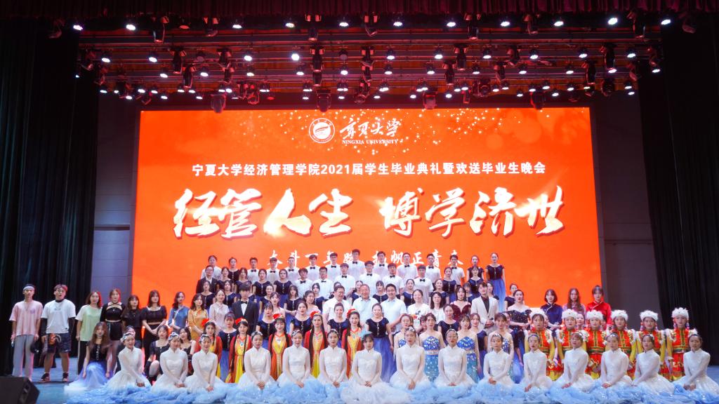 【宁夏大学新闻中心讯 经济管理学院】6月9日晚,经济管理学院(西部发展研究院)2021届毕业典礼暨欢送毕业生晚会于文萃校区大学生活动中心举行。经济管理学院(西部发展研究院)领导班子成员,康师傅银川分公司人资处企业文化建设专员李静,粉笔教育宁夏分校副校长何刚,粉笔教育宁夏分校运营总监冯立斌,宁夏大学学生会、各兄弟学院团学组织代表,学院各办公室、各系、各支部负责人,学院教师代表以及全体在校本科生、研究生参加了此次毕业典礼。典礼由学院党委副书记程胜利主持。