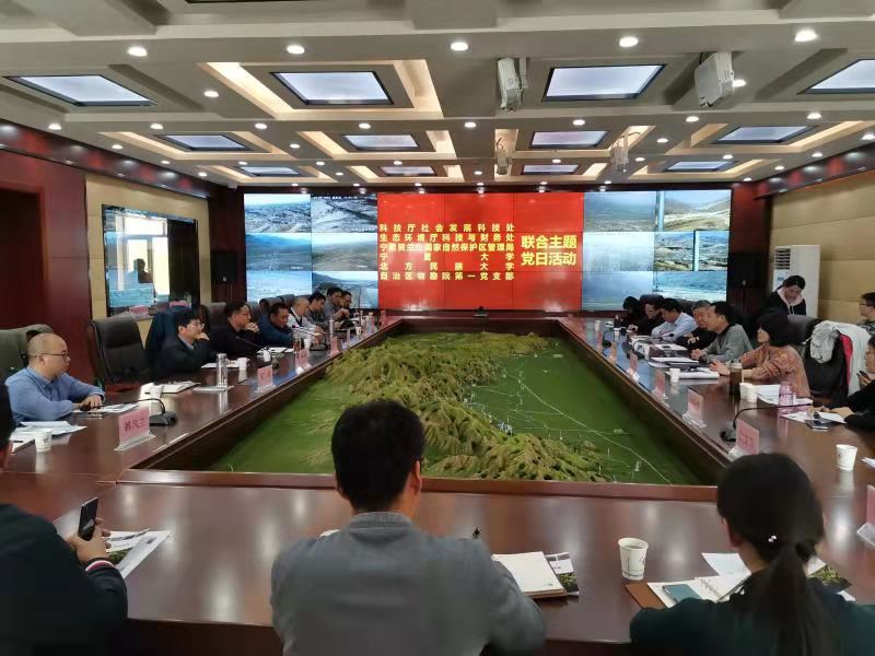 【宁夏大学新闻中心讯 生态环境学院】为深入贯彻落实习近平总书记在中央党史学习教育动员大会上的重要讲话精神,加强生态民生领域科技支撑,推动宁夏贺兰山森林生态系统国家定位观测研究站(简称:贺兰山森林生态站)建设,充分发挥科技创新在黄河流域生态保护和高质量发展先行区建设中的支撑引领作用,4月9日,我校生态环境学院党委联合科技厅社会发展科技处党支部、生态环境厅科技与财务处党支部、宁夏贺兰山国家级自然保护区管理局苏峪口管理站党支部、自治区物勘院第一党支部和北方民族大学生态环境保护领域专家共同举办“学党史 办实事 科技创新助力生态保护”主题党日活动。