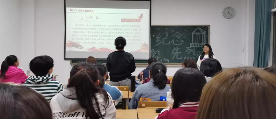各班团支书以文字、图片和视频结合的方式,全方位的向同学们展示了新中国建立过程中的各位革命先烈与感人事迹,让同学们多方面了解本次活动的目的及意义;有些班级还采用放一部微电影的方式,让大家更深入了解英雄事迹,带入时代背景,产生自己深刻的见解。
