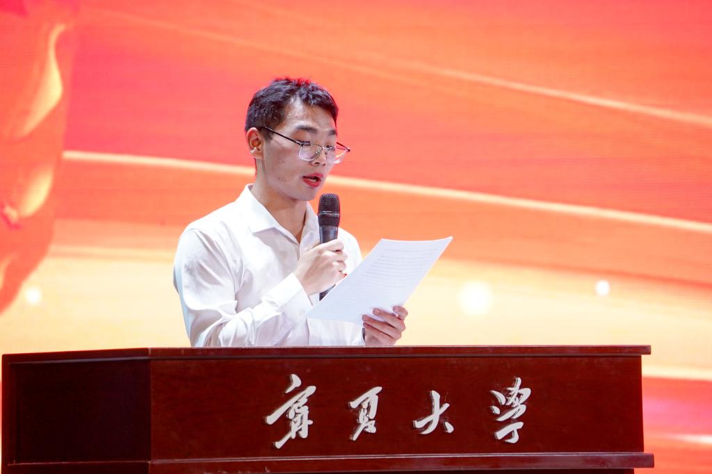 新发展党员代表、2019级会计学专业本科生梁振刚表示,抚今追昔,说不尽百年风雨的沧桑巨变,道不完坎坷探索的伟业辉煌。他回忆了中国共产党百年历程,歌颂了中国共产党党员在危难时刻救民于水火,救民族于危亡的担当精神。