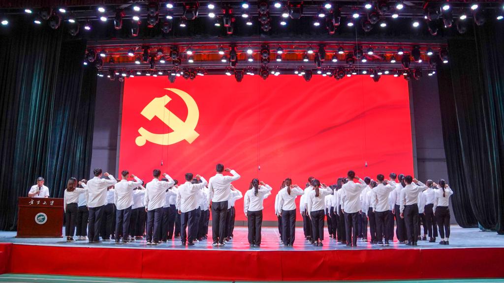入党宣誓是对党员进行党的教育的一种有效形式,也是党员庄严表达自己的信仰和为共产主义理想奋斗终身的仪式。马建宏领誓,新党员入党宣誓、老党员重温入党誓词。右手紧握于耳边,一字一句铿锵的誓言掷地有声,不悔的誓言铭记于心。