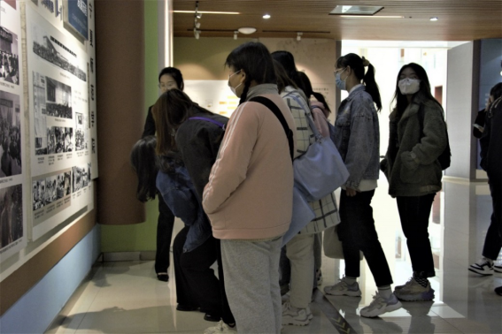 进入科技综合楼大门,宁夏大学“尚德、勤学、求是、创新”的校训映入眼帘,同学们驻足仰目以示敬意后,便开启了探索学校历史之旅。图文并茂的展板、古朴厚重的实物相辅相成,囊括了党建和思想政治教育、科研教学、人才培养、对外交流与合作等方面的内容,向同学们呈现出学校光荣而悠久的历史。这是一部一代代宁大人艰苦奋斗、自力更生、负重拼搏的发展史,充分展现了宁大人与党同心、改革创新、奋发有为的精神特质。