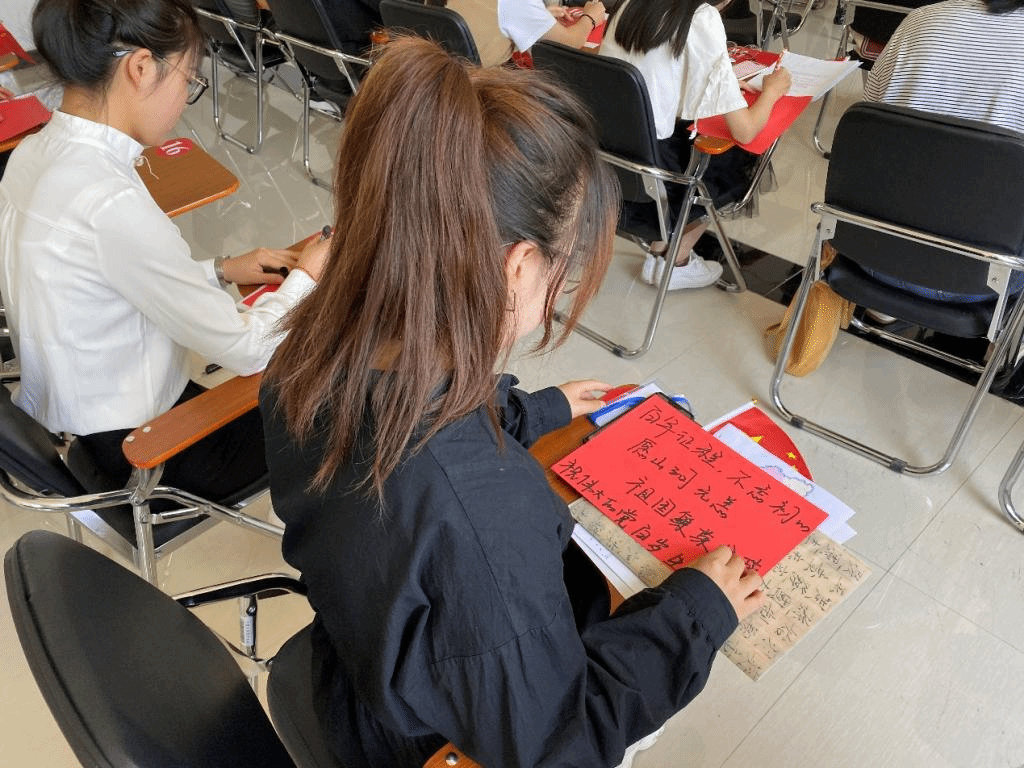 在场的师生党员们在卡片上写下“政治生日”的心愿。