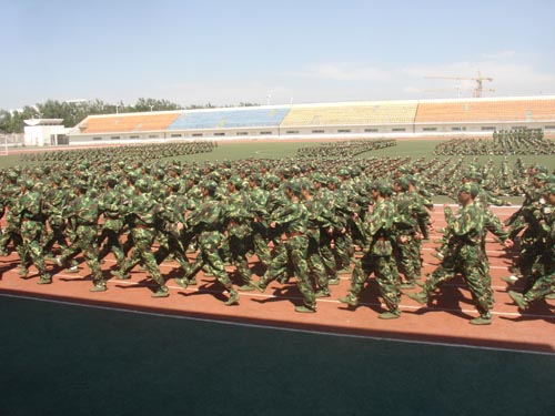 7月19日,宁夏大学军训团领导莅临我校B区运动场,观看了军训团一营六个连和三营四个连的会操表演,各个连队的表演赢得了军训团领导的广泛肯定和一致好评。