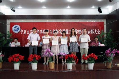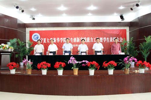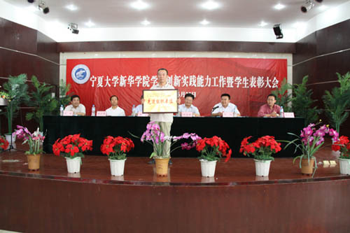 【宁夏大学新闻中心讯 新华学院】6月23日下午,新华学院学生创新实践能力培养工作暨学生表彰大会在大学生活动中心召开。学院党委书记周学峰,党委副书记、常务副院长刘炜,副院长雍少华、党小龙、周波参加了表彰会。会议由学院党委副书记张桓主持。