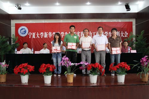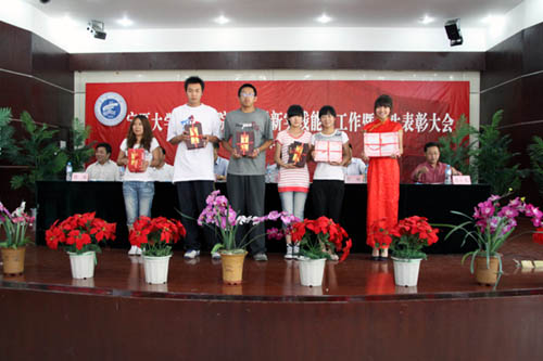 会上,周学峰书记宣读了“关于表彰2009年在全国大学生数学建模竞赛和第一届全国大学生数学(非数学类)竞赛中先进组织单位、获奖团队和个人的决定”、“关于表彰第四届宁夏大学新华学院校园文化科技艺术节暨第二届社团文化艺术节获奖集体和个人的决定”、“2009年暑期社会实践表彰人员名单”。学院领导为获奖团体和个人颁奖,之后,各系学办主任做了交流发言。