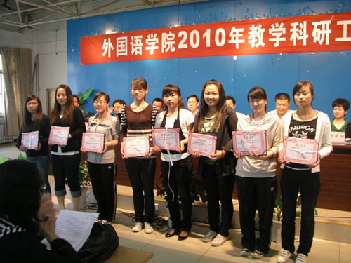 【宁夏大学新闻中心讯 外国语学院】5月26日下午,外国语学院召开了2010年教学科研工作会议。会议对2009年度专业教学、公共英语教学获奖人员及获得重大奖项的学生进行了表彰奖励。