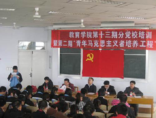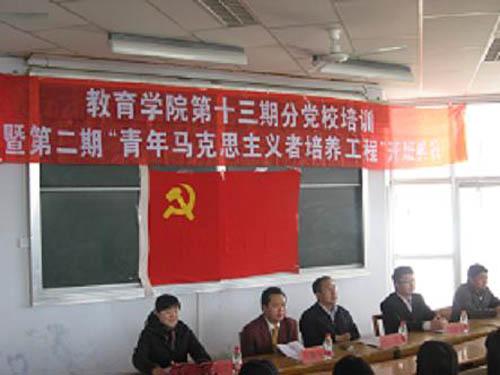 【宁夏大学新闻中心讯 教育学院】4月10日上午,教育学院举行第十三期分党校暨第二期“青年马克思主义者培养工程”培训开班典礼。学院党总支书记鲁晋、党总支副书记吕海军及校团委、学院学生工作办公室老师参加了开班典礼。学院党总支书记鲁晋围绕学生的思想、学习、生活等方面对参加培训的学员提出了要求。开班典礼结束后,鲁晋书记为培训班学员做了第一场题为《民主与科学》的报告。