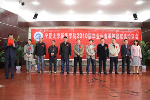【宁夏大学新闻中心讯 新华学院】 4月20日,新华学院春季校园双选洽谈会在大学生活动中心成功举办。自治区教育厅、自治区人才交流中心、银川市劳动就业服务局相关部门负责人,新华学院党委书记周学峰、党委副书记刘炜等参加了洽谈会开幕式并与用人单位和毕业生代表亲切交流。