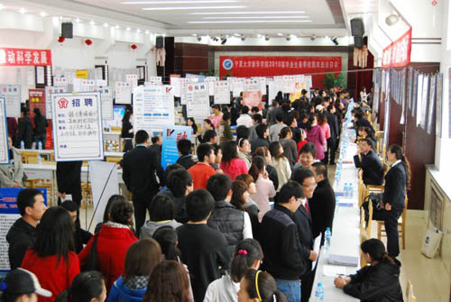 本次“双选”洽谈会是贯彻落实学院2010届毕业生就业工作会议精神的重要举措,也是学院开展“就业指导服务月”活动的重要内容。洽谈会得到了自治区毕业生就业指导中心、自治区人才交流中心、银川市劳动就业服务局、银川市职业介绍服务中心、宁夏大学就业指导服务中心等单位和部门的大力支持。洽谈会共有120余家用人单位登记参会,新华百货股份有限公司、宁夏上陵实业集团、宝丰能源等多家用人单位到场招聘并共提供就业岗位1800多个,吸引了学院及周边院校2000多名毕业生进场求职。