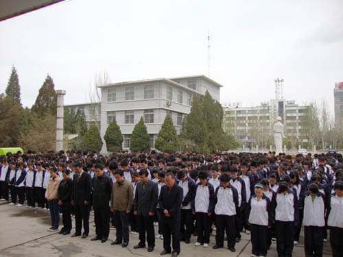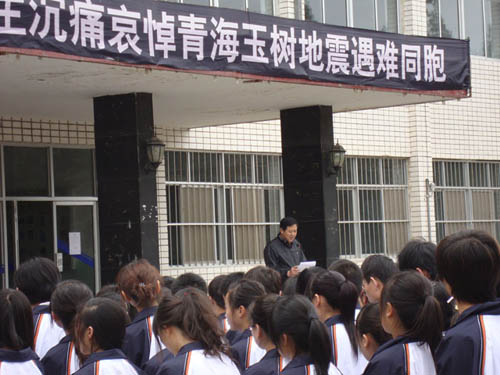 【宁夏大学新闻中心讯 继续教育学院、高等职业技术学院】 4月21日上午,高职学院南楼门前悬挂着“继续教育、高职师生深切哀悼青海玉树地震遇难同胞” 的横幅。近千名师生悼念青海玉树地震遇难同胞。师生为青海玉树地震遇难同胞默哀三分钟,寄托对他们的哀思。