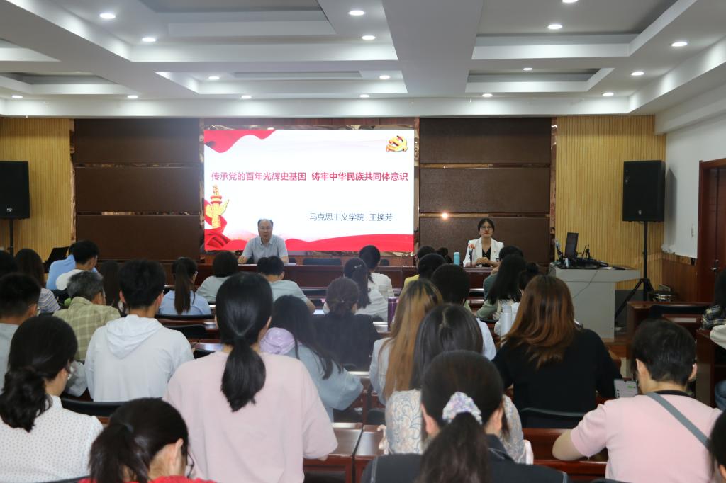王换芳以“传承党的百年光辉史基因,铸牢中华民族共同体意识”为题,从“中华民族概念的历史演变,高度重视民族工作是贯穿中国共产党百年历史的红线,传承百年光辉史基因、增强铸牢中华民族共同体意识的政治自觉”三个方面进行了宣讲。她结合自身丰富的教学实践和理论研究,系统讲述了铸牢中华民族共同体意识的重要意义及践行要求。