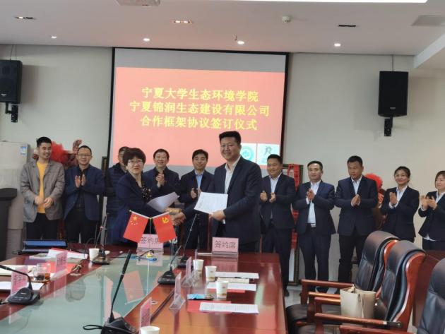 学院教师代表与宁夏锦润生态建设有限公司项目负责人进行交流座谈,双方就未来项目合作与咨询、研究生教学实习实训基地建设、双导师互聘计划项目推进、科研仪器设备共享等议题交换了意见,并签署合作协议。