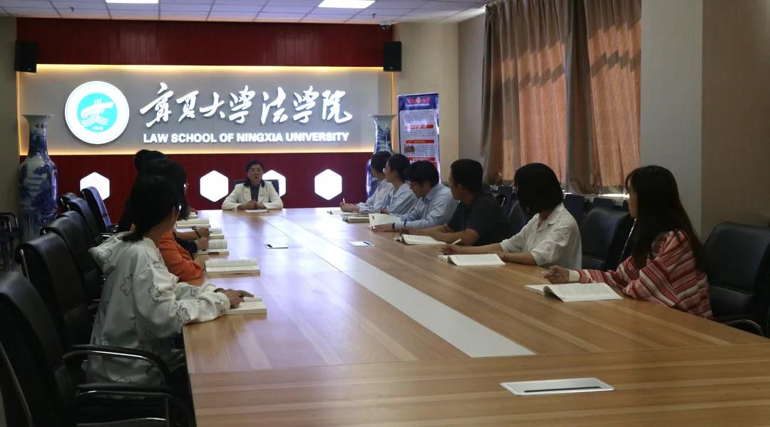 【宁夏大学新闻中心讯 法学院】为推动习近平法治思想进教材进课堂进头脑,9月28日中午,法学院于文荟楼801会议室组织召开学习贯彻习近平法治思想交流座谈会。院党委书记潘瑞、副书记杨扬、团委书记兼学生工作办公室主任王嘉豫、学科及学位点建设负责人张弛、辅导员付晓晨及本科生、研究生代表参会。