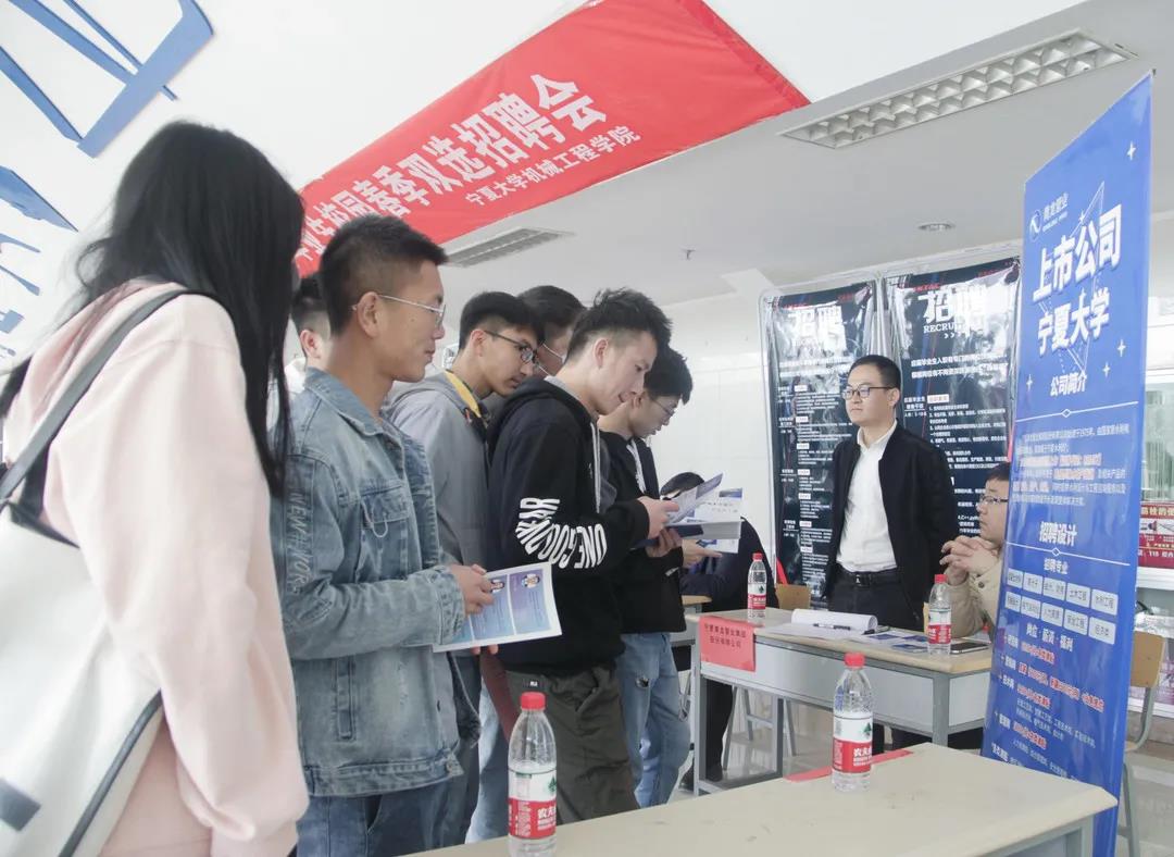 【宁夏大学新闻中心讯 机械工程学院】为落实宁夏大学2021年毕业生就业工作安排部署,帮助广大毕业生把握求职机遇。4月17日,机械工程学院在大学生活动中心二楼东侧展厅举行了校园春季双选招聘会。此次招聘会邀请到宁夏小牛自动化设备有限公司、海尔智能股份有限公司等28家企业参加,招聘会面向在校2021届毕业生及有意愿就业的2022届毕业生,共280余人参加此次招聘会。