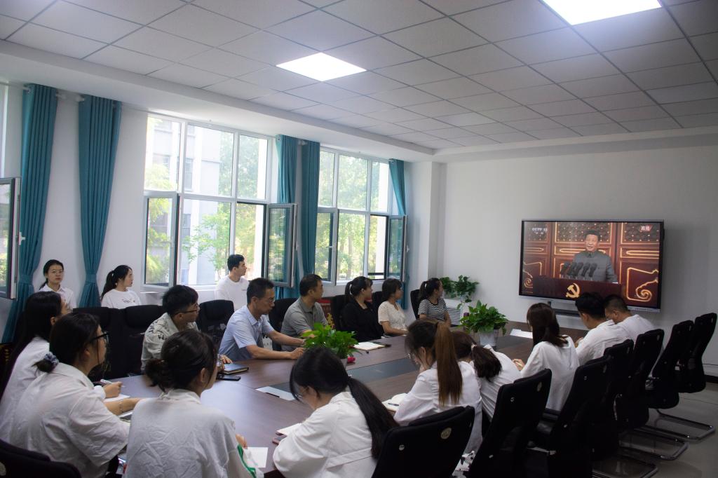 全体师生党员、入党积极分子、青年团员认真观看《习近平总书记在庆祝中国共产党成立100周年大会上的讲话》。