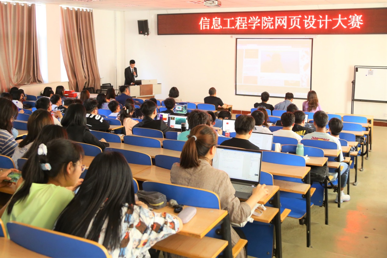 【宁夏大学新闻中心讯 信息工程学院】为加强学生的专业知识应用能力、丰富课余生活。5月23日,信息工程学院在金波楼321教室举行网页设计大赛。学生工作办公室主任李密、辅导员张晓,团委、学生会主席团成员王正航、詹鑫宁、虎国浩、田培、李震担任评委嘉宾。