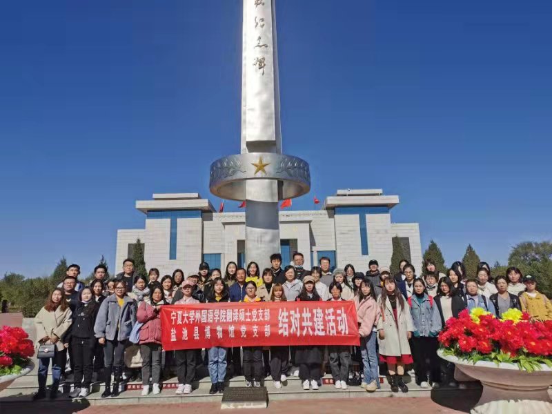 【宁夏大学新闻中心讯 外国语学院】为进一步加强党史学习教育,深入推进“我为群众办实事”实践活动走向深入。10月11日,外国语学院党委副书记余洁、副院长朱海燕及翻译硕士党支部书记、学生党员赴盐池革命纪念馆,与盐池博物馆党支部开展结对共建活动。