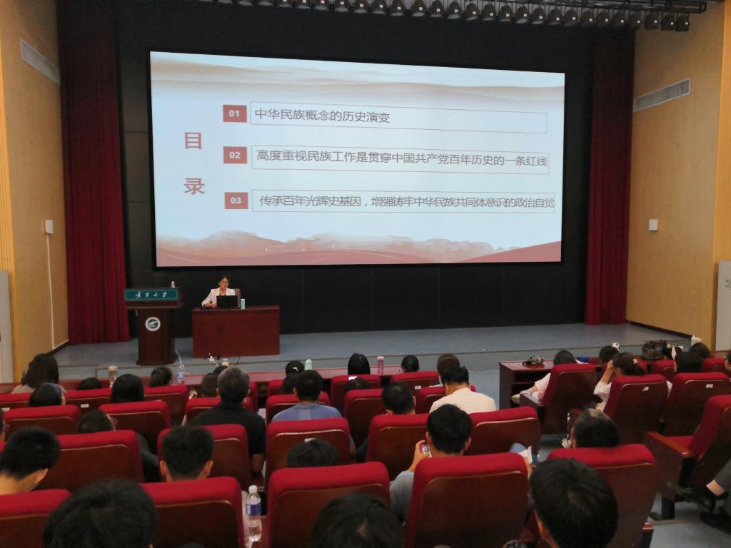 【宁夏大学新闻中心讯 生态环境学院】为庆祝建党一百周年,推进党史学习教育深入开展,引导学院师生学党史、感恩党、听党话、跟党走,从党的百年奋斗历程中汲取营养、汇聚力量。6月9日,生态环境学院邀请马克思主义学院王换芳老师在科技楼报告厅举办“传承党的百年光辉史基因,铸牢中华民族共同体意识”主题讲座,学院全体师生参加了报告会。报告会由党委副书记虎建华主持。