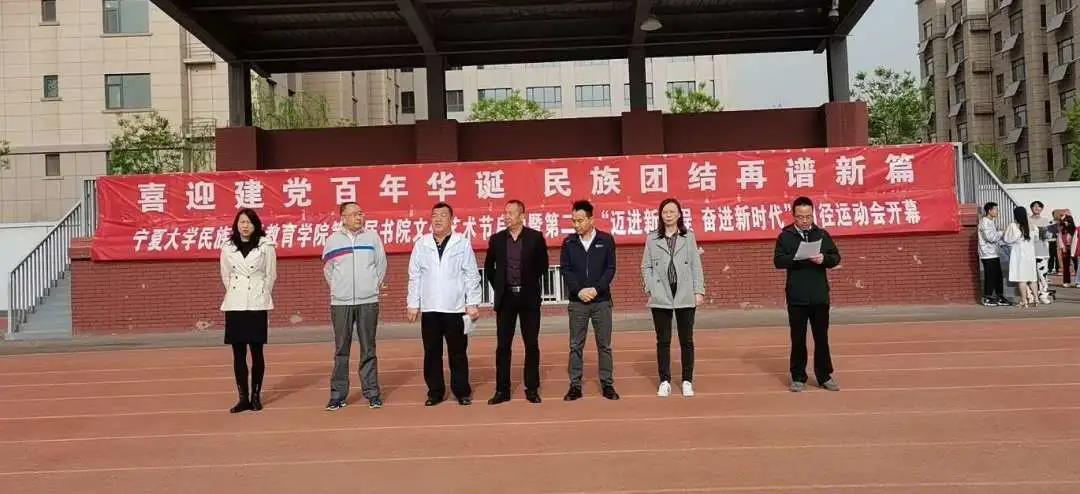 【宁夏大学新闻中心讯 民族预科教育学院】为庆祝中国共产党成立100周年,推动学生德智体美劳全面发展,丰富校园文化,4月26日,学院在金凤校区田径场举办了“喜迎建党百年华诞 民族团结再谱新篇”第四届书院文化艺术节启动暨第二届“迈进新征程 奋进新时代”田径运动会。学院全体党政领导、辅导员以及2020级学生参加,党总支副书记郭利主持开幕式。