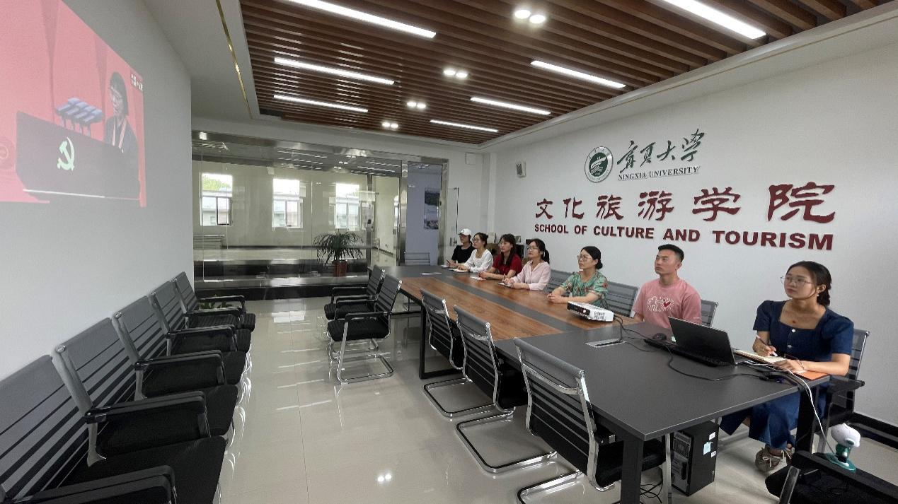 【宁夏大学新闻中心讯 文化旅游学院】6月29日上午10时,文化旅游学院组织师生党员、入党积极分子、团学骨干等七十余人在博闻楼多媒体教室、党员会议室以及二号教学楼等地集中收看了“七一勋章”颁授仪式大会实况。