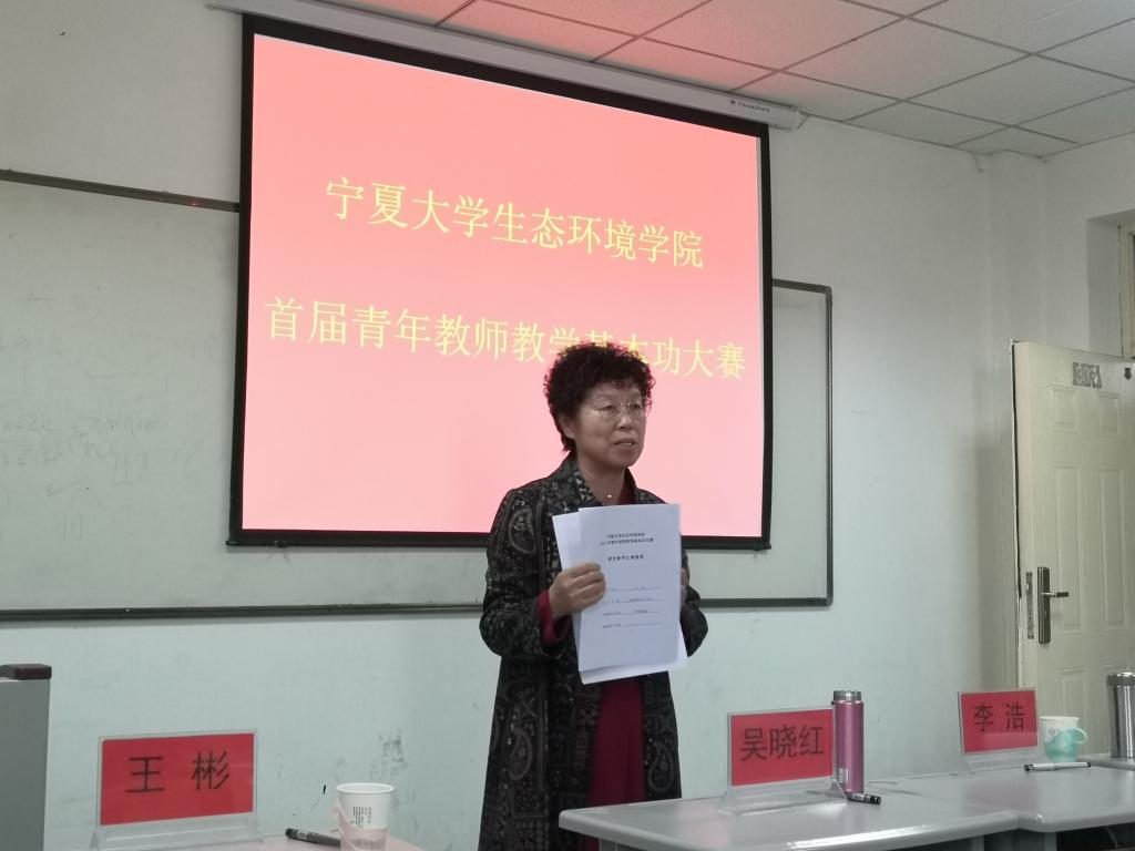 【宁夏大学新闻中心讯 生态环境学院】为了有效提升青年教师教学技能,10月20日上午,生态环境学院举办第一届青年教师教学基本功大赛。特邀我校长期从事教师发展与培训、教育教学研究、一线教学科研的领导、专家、教学名师及获得国家青年教师教学基本功大赛一等奖的优秀青年教师为评委,组织环境科学系、生态学系13名青年教师参加本次大赛,学院领导班子、本科教学督导、学生代表、教师代表观摩大赛并做场外评价。