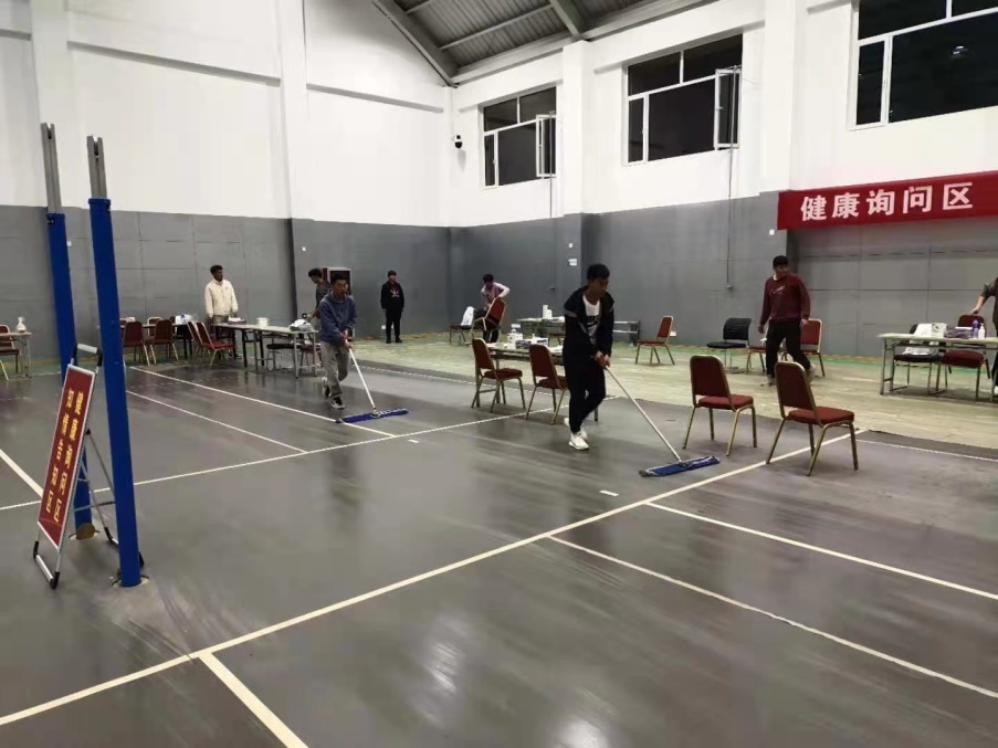 【宁夏大学新闻中心讯 体育学院】为给广大师生提供舒适、安全、卫生的新冠疫苗接种环境,体育学院按照学校整体部署,积极准备,通力协作,将怀远体育馆作为本次全校师生新冠疫苗临时接种点并提供相关配套服务保障工作。