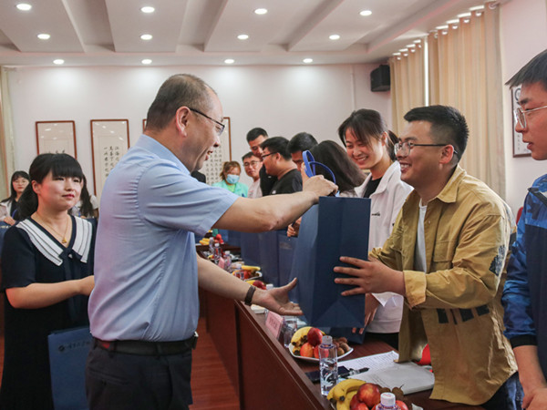 会后,新华学院党委副书记、常务副院长郭少新为毕业生代表颁发了纪念品。