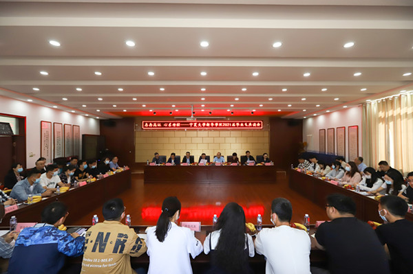 【宁夏大学新闻中心讯 新华学院】5月26日,新华学院在行政楼二楼大会议室召开2021届毕业生座谈会。学院党政领导、相关部门负责人、各系党总支书记、主任、教学办公室主任、学生工作办公室主任、毕业班辅导员及30名毕业生代表参加了座谈会,座谈会由学生处处长席博主持。