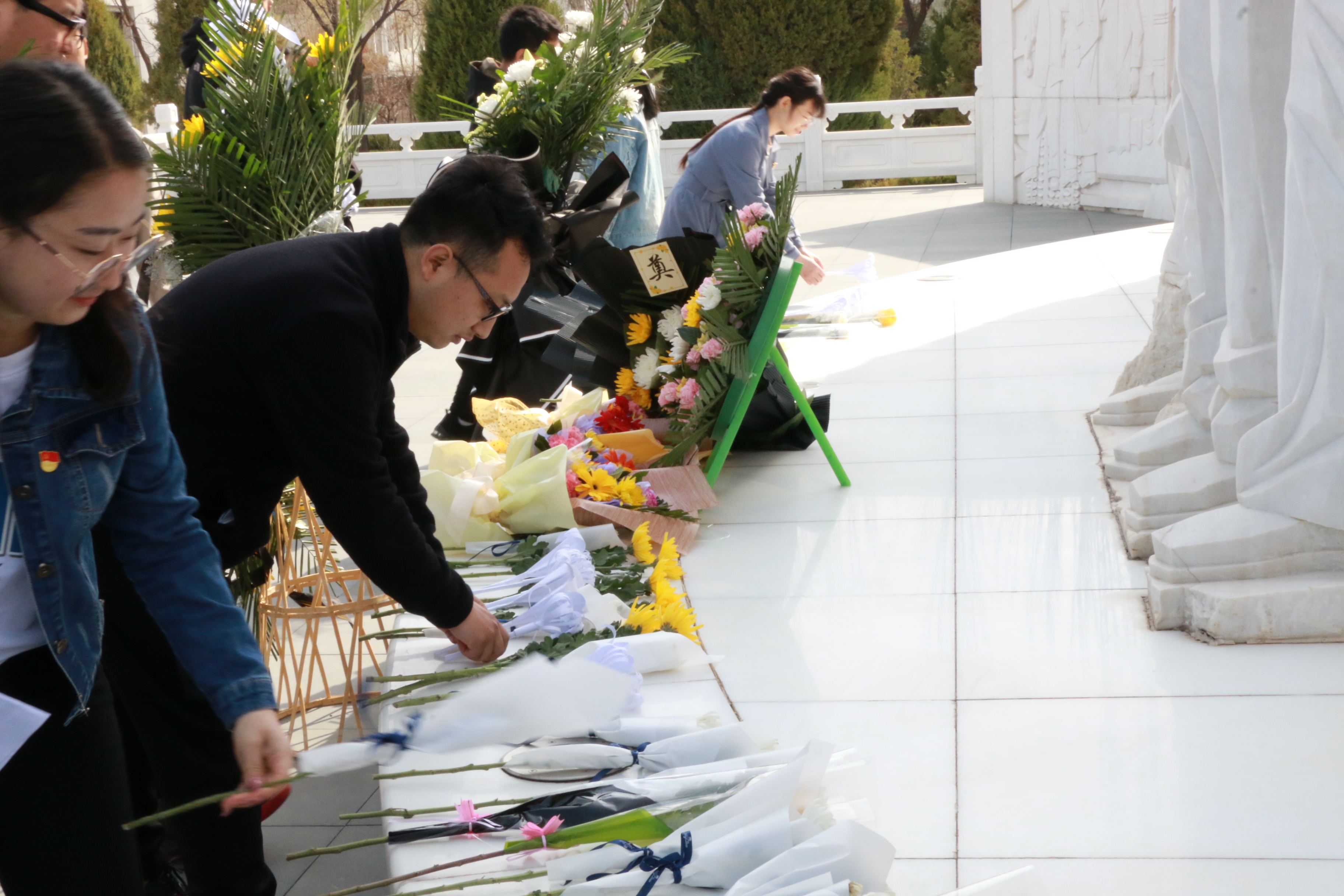 在纪念碑前,学生代表向革命烈士纪念碑敬献花篮。随后,全体人员怀着庄严肃穆的心情向革命烈士纪念碑敬献了自己亲手制作的百合花,鞠躬致敬,集体默哀三分钟,向烈士们表达深切的悼念和崇高的敬意。
