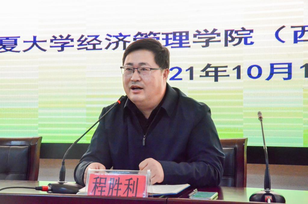 程胜利传达了此前宁夏大学周震副校长在全校学风建设会议中的讲话精神:要重视学风建设,努力提高本科生考研率。程胜利希望我院同学们将考研观念从各年级落实到各班、各团支部、各宿舍的日常会议中,让考研的观念深深扎根在每一位经管人的心中,早日达到我院毕业生考研报考率百分之九十、考研完成率百分之八十、考研成功率百分之五十的“985”愿景。