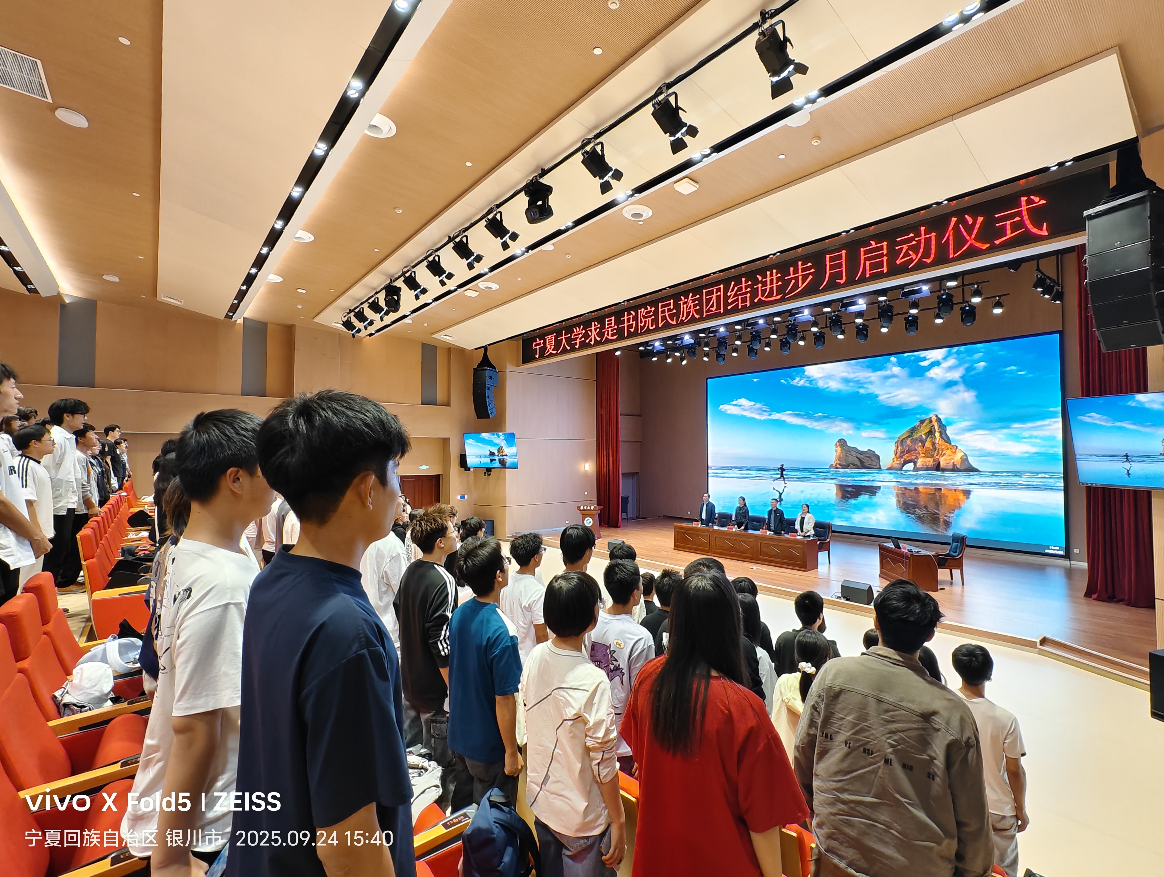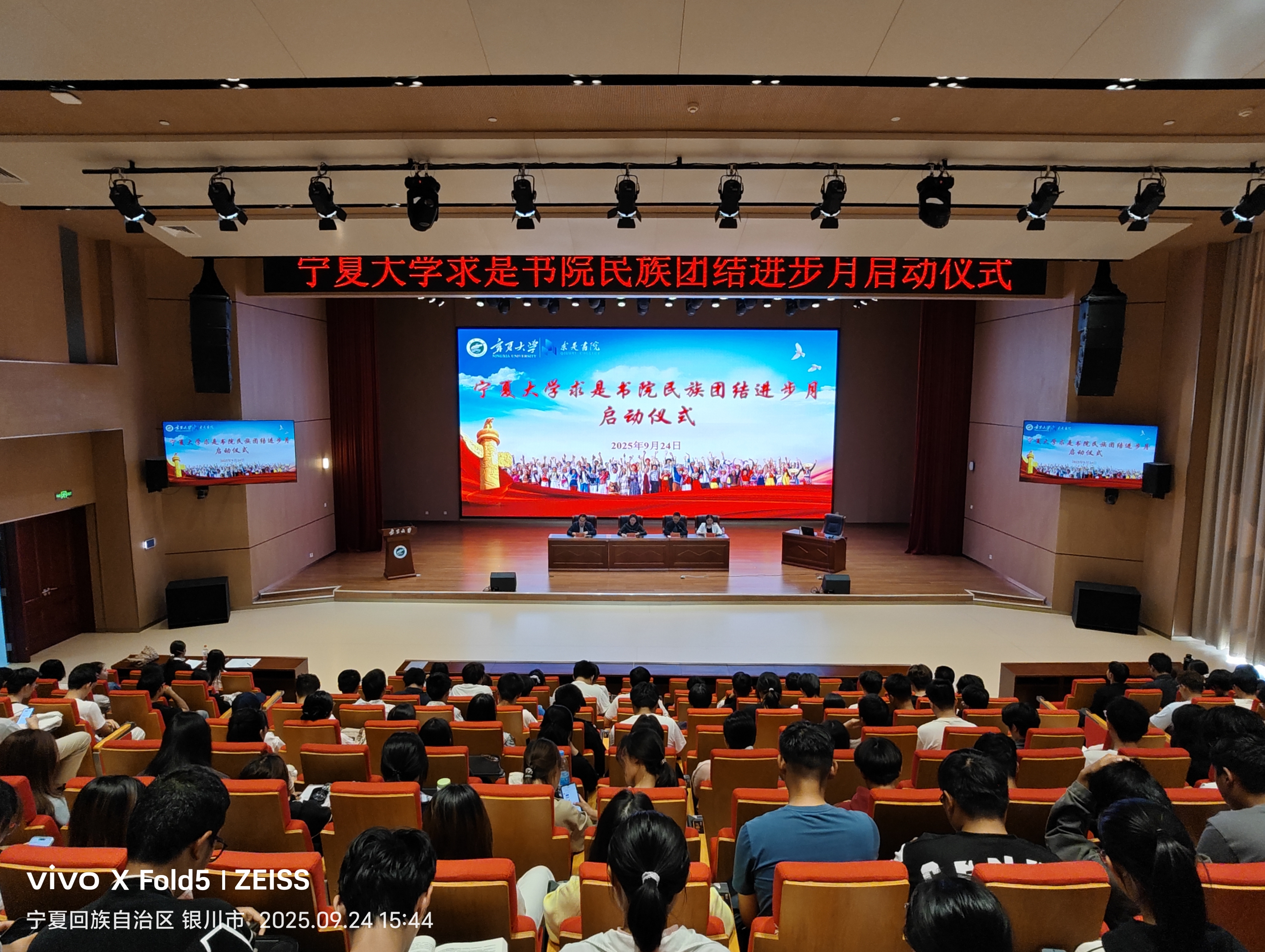 【宁夏大学新闻中心讯 求是书院】为深入贯彻落实党的民族政策,加强民族团结进步教育,增进各民族学生之间的交往交流交融,持续推动铸牢中华民族共同体意识在书院走深走实,求是书院于9月24日下午在笃行楼一楼报告厅举行民族团结进步月启动仪式。求是书院党委书记、院长武林波,副书记马彦峰、刘剑,副院长张振霞,全体辅导员以及党员、团员、青年学生、少数民族学生代表共390人参加。启动仪式由马彦峰主持。