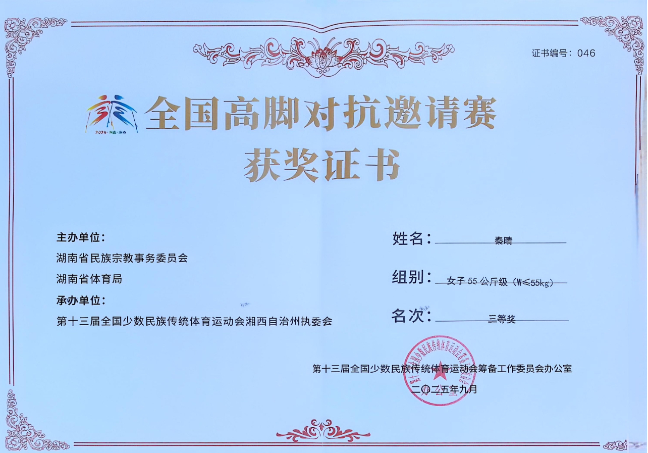 我校选派7名运动员参加了本次邀请赛,其中秦晴取得女子55公斤级三等奖,古次石古、马致远分别夺得男子70公斤级、80公斤级二等奖的好成绩: