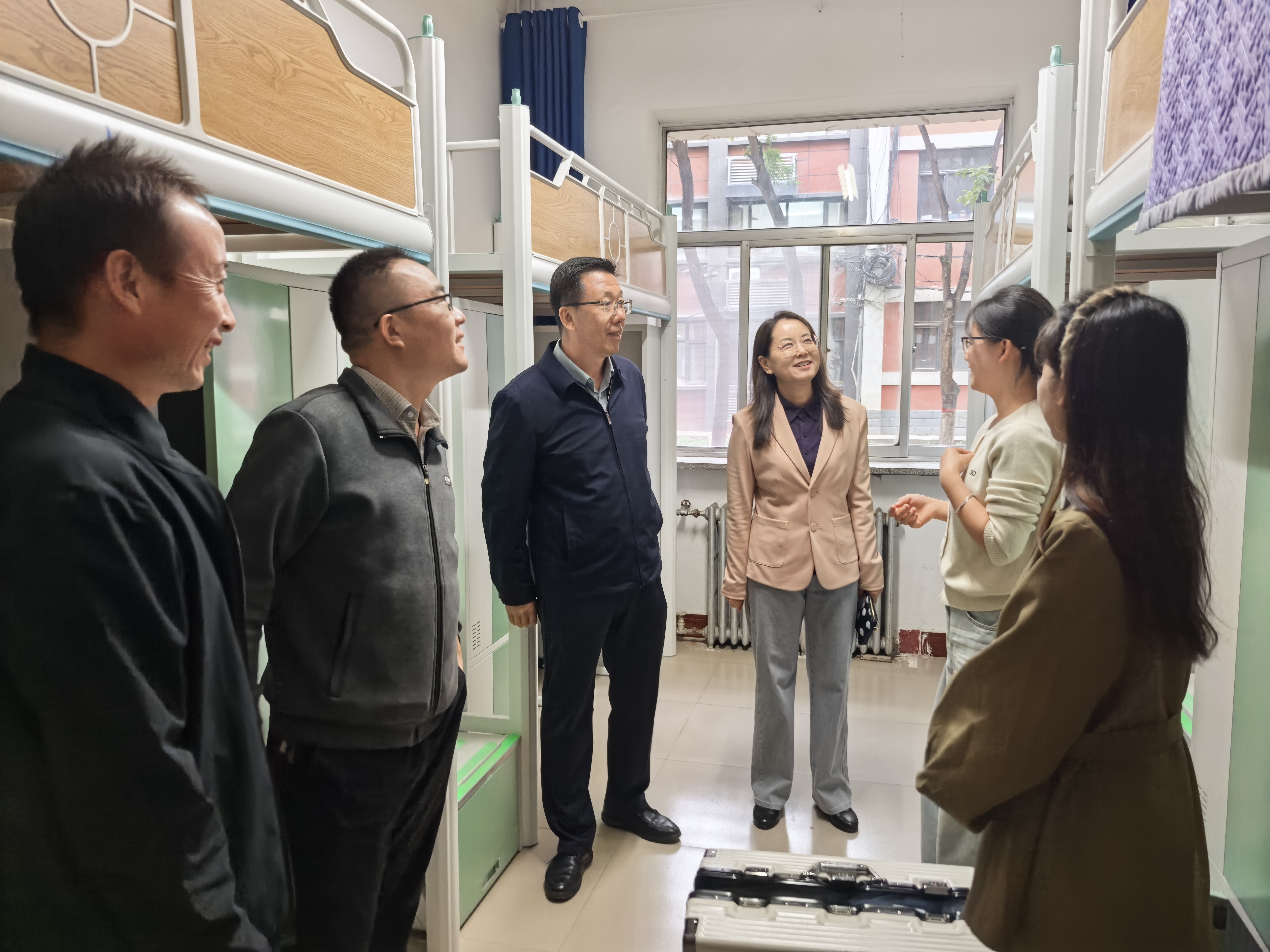 学院全体领导和班主任还走进宿舍与新生亲切交谈,重点关注来自偏远地区的新生,细致询问住宿适应情况,现场协调解决热水供应、家具维修等问题。