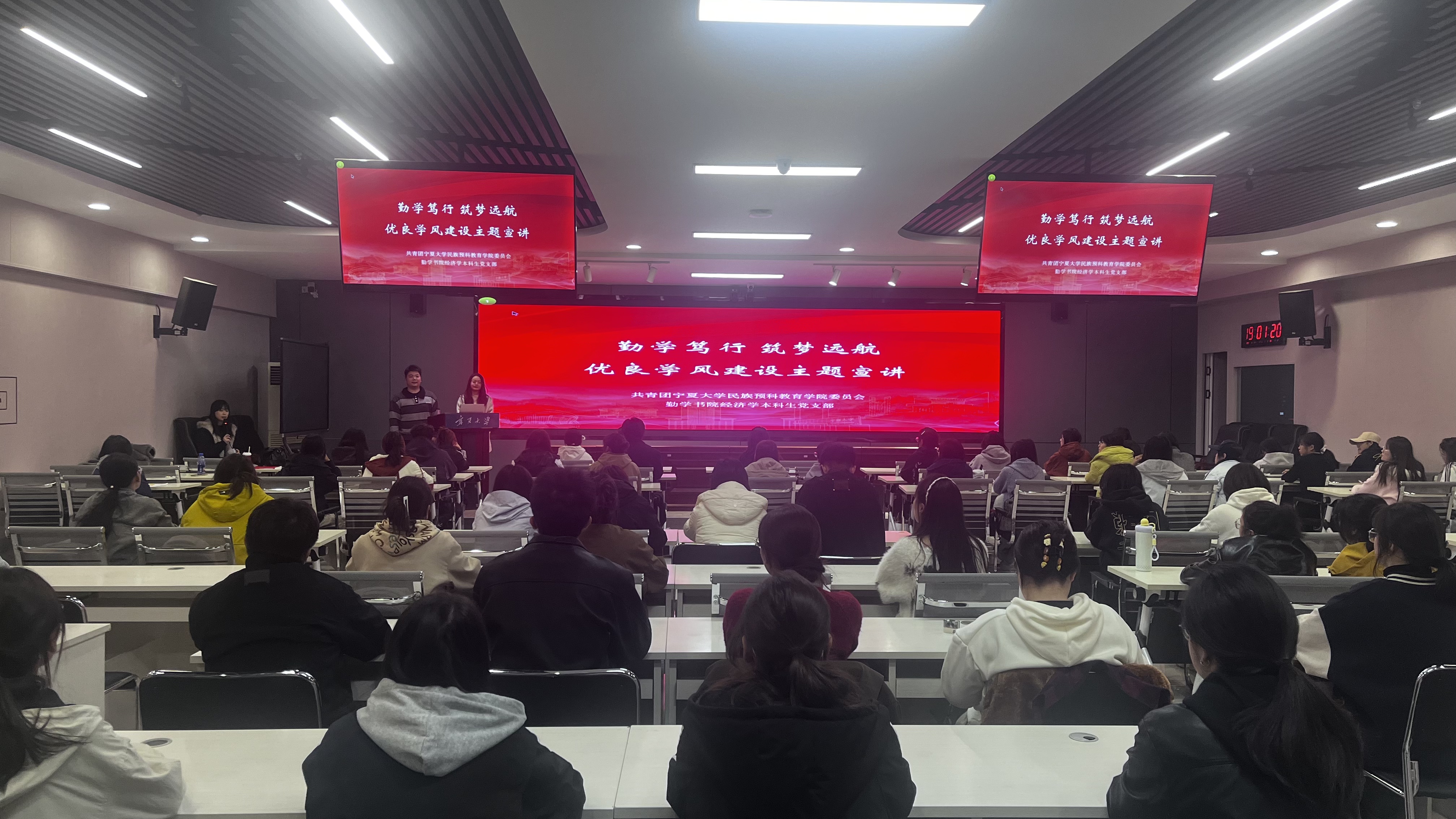 【宁夏大学新闻中心讯 勤学书院】为深入贯彻落实立德树人根本任务,推动优良学风建设,营造积极向上的学习氛围,10月19日下午,民族预科教育学院与勤学书院经济学本科生党支部携手开展“勤学笃行 筑梦远航”优良学风建设主题活动。本次分享交流会由勤学书院经济学本科生党支部成员林江涛、林莹主讲,民族预科教育学院学生参加。