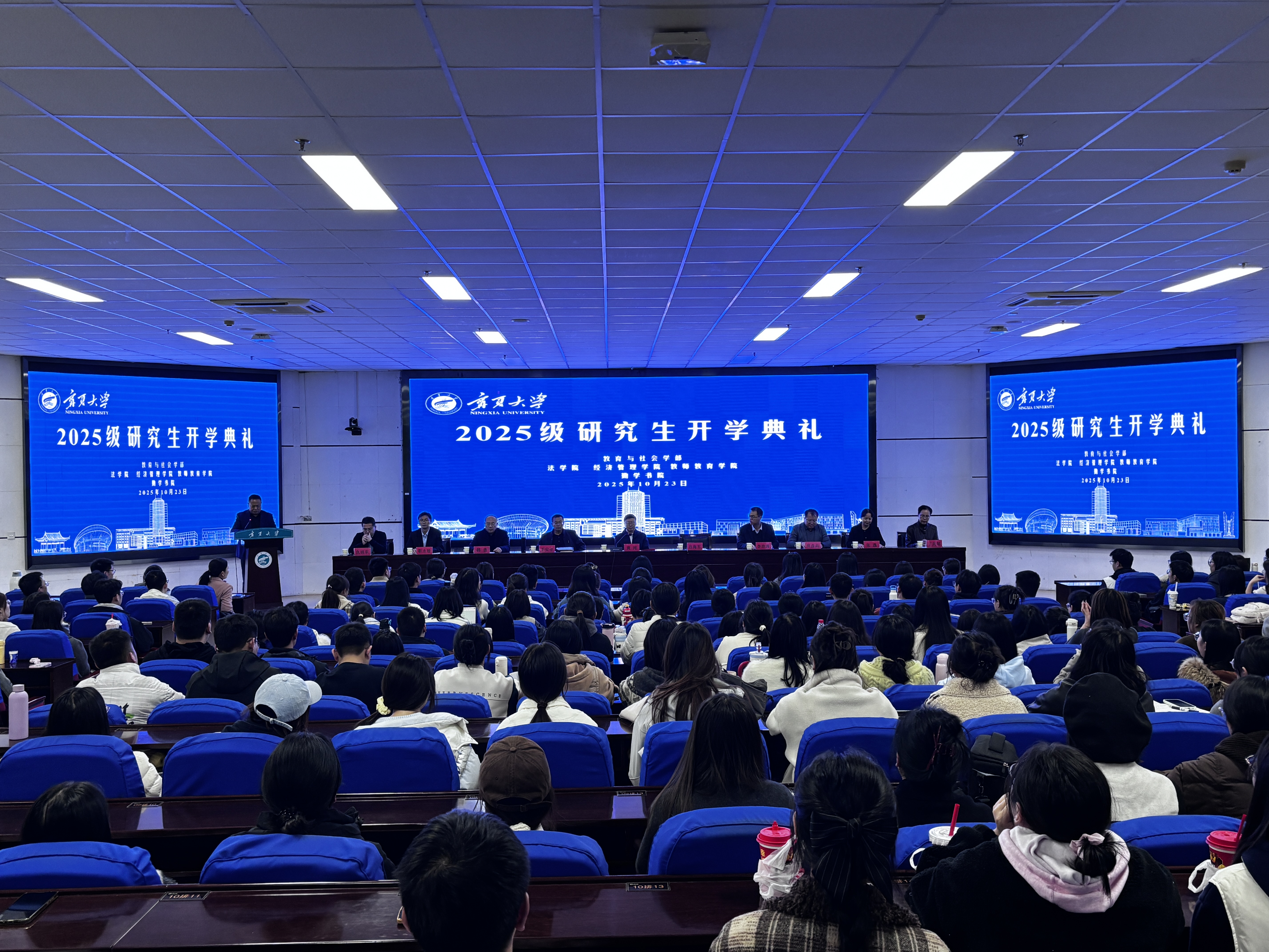 【宁夏大学新闻中心讯 教育与社会学部】执钥启新途,研途闪星辰。10月23日下午,我校教育与社会学部2025级研究生开学典礼在贺兰山校区东报告厅举行。校党委常委、副校长、教育与社会学部部长黄河出席典礼。学部及组成学院、勤学书院领导、导师和青年教师代表、新生辅导员与全体2025级336名硕士研究生共同参加了典礼。大会由教育与社会学部党委书记吕海军主持。