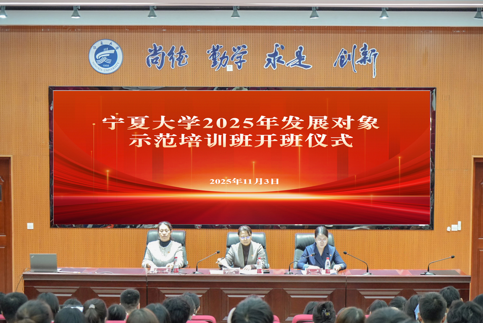 【宁夏大学新闻中心讯 润泽书院】11月3日,宁夏大学2025年发展对象示范培训班在文萃校区知行楼三阶报告厅开班。校党委常委、组织部部长张永丽出席开班仪式。仪式由润泽书院党委书记、院长马骏主持。宁夏大学2025年发展对象示范培训班全体学员参加了开班仪式。