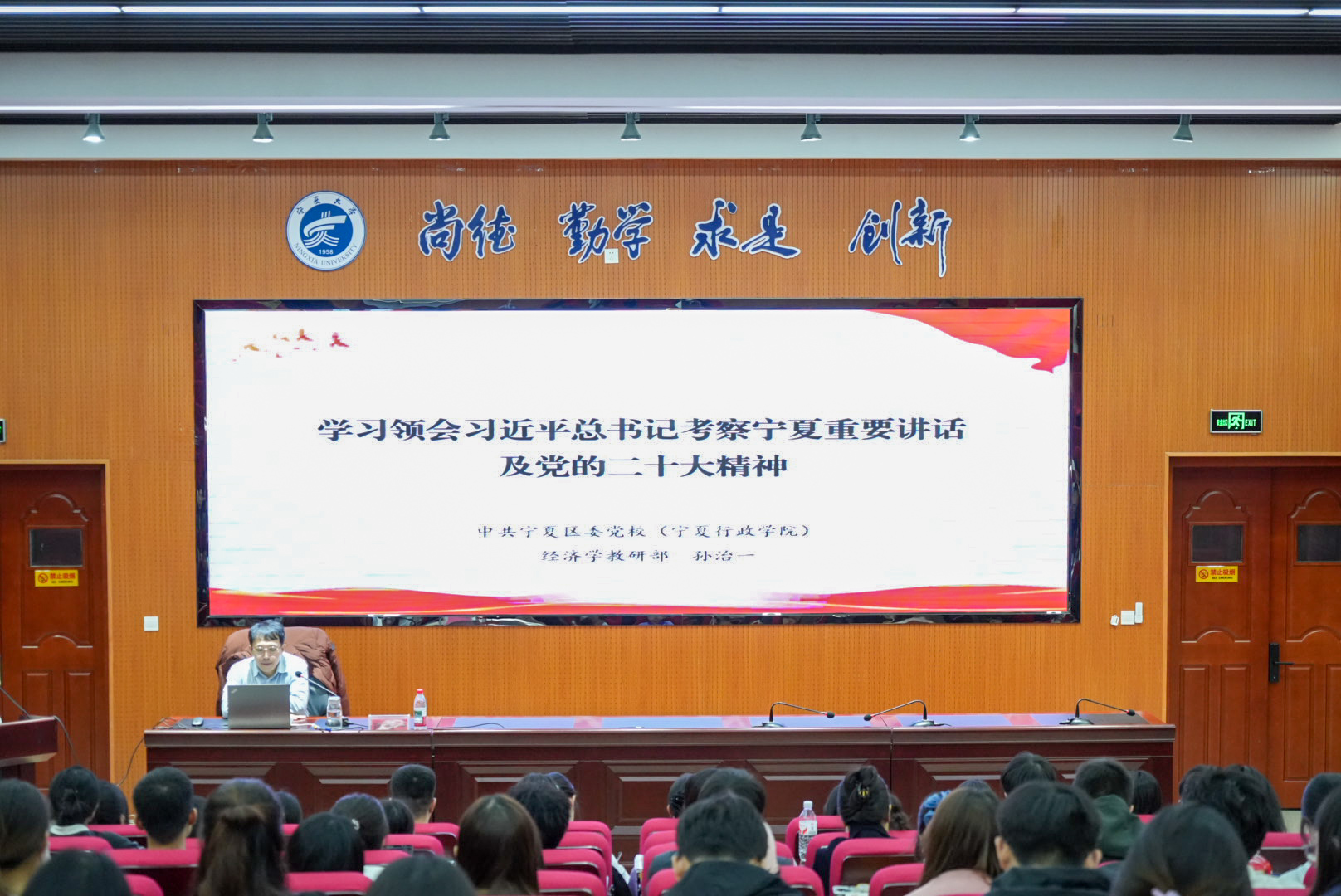 开班仪式后,中共宁夏区委党委党校孙治一副教授为全体学员作了《学习领会习近平总书记考察宁夏重要讲话及党的二十大精神》的专题讲座。