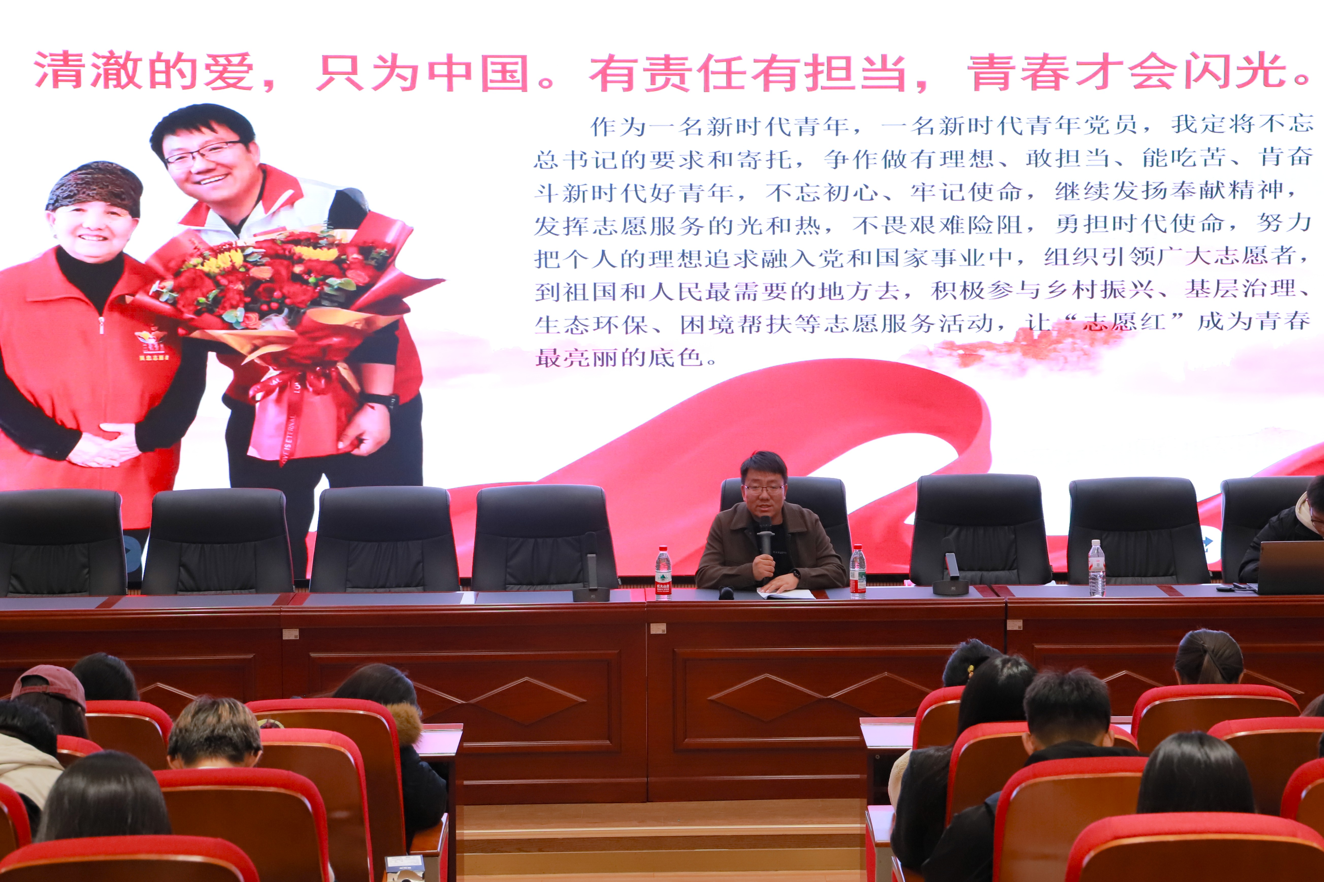 杨小明鼓励学弟学妹们要牢记校训,继续发扬“沙枣树”精神,组织引领广大志愿者到祖国和人民最需要的地方去,让“志愿红”成为青春最亮丽的底色,在奉献中实现人生价值。