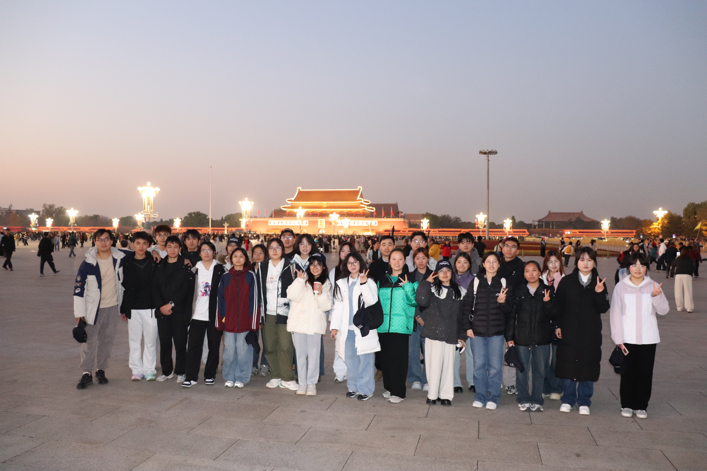 研学首日,在国家博物馆的展厅里,厚重的历史文物与“复兴之路”的壮阔画卷,让同学们深刻感知到中华民族从站起来、富起来到强起来的伟大飞跃。傍晚时分,天安门广场庄严的降旗仪式,更是一次生动的爱国主义教育。