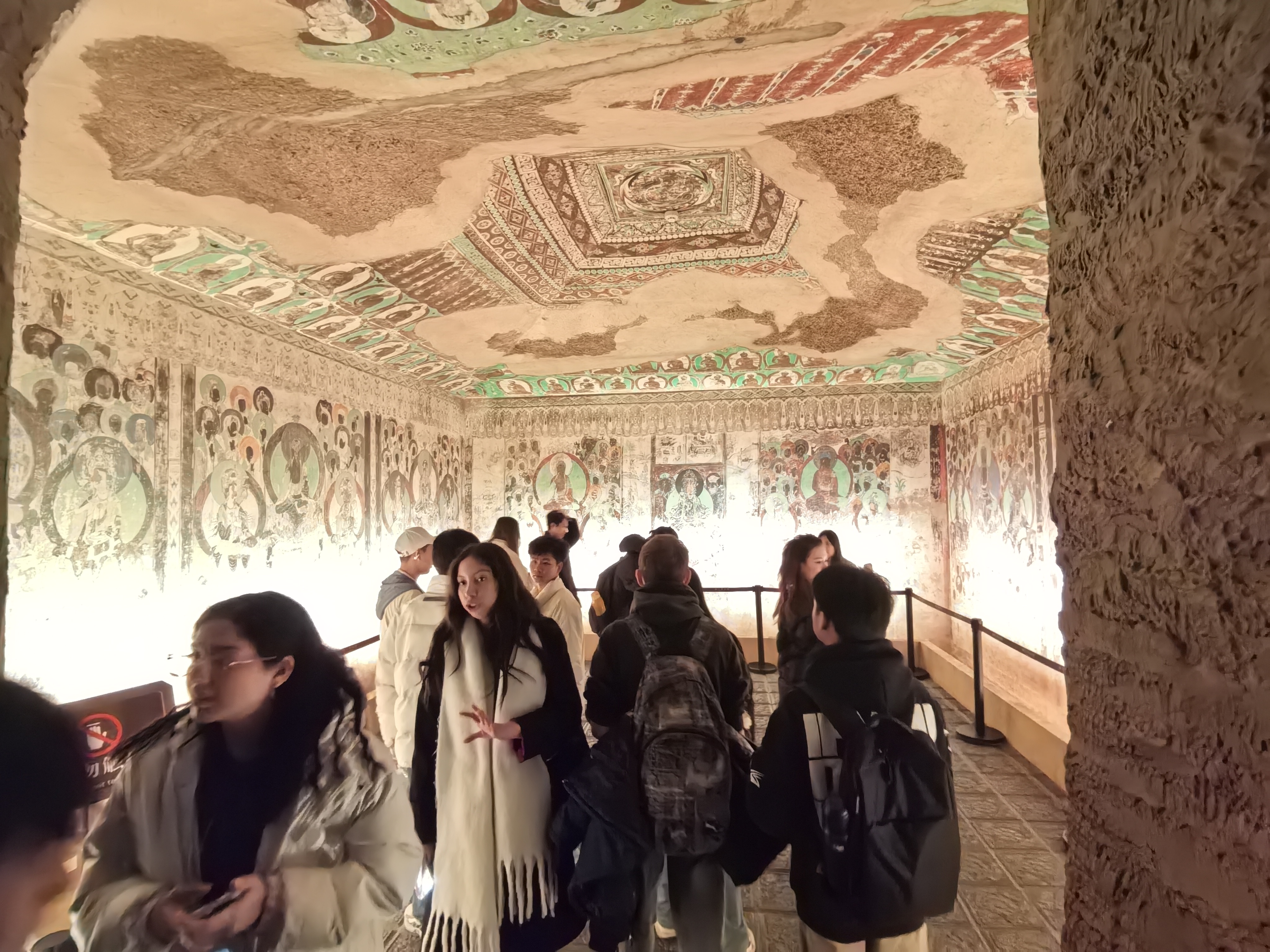 研学首站抵达西夏博物馆。在一件件古朴陶器、一幅幅精美石刻、一行行独特西夏文字前,国际学生们驻足流连。在沉浸式观摩与细致聆听中,大家逐步深化对这一古老文明的认知——那些似画非字的神秘符号、精美绝伦的艺术造像,无不彰显西夏文明独树一帜的文化魅力与卓越艺术成就。随后来到西夏陵国家考古遗址公园,在冬日晴空下,被誉为“东方金字塔”的三号陵墓更显雄浑壮观,不同于博物馆内的精致有序,陵墓以其磅礴体量、厚重夯土质感与历经岁月沉淀的沧桑感,诉说着权力、信仰与时间的宏大叙事。
