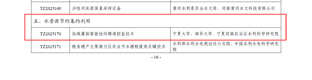 《水利先进实用技术重点推广指导目录》是水利部面向全国水利领域遴选先进、成熟、具备广泛推广价值技术的重要平台。此次“低碳灌排智能协同精准控盐技术”的成功入选,不仅体现了宁夏大学在水利科技创新与黄河流域生态保护和高质量发展战略中的科技担当,也将进一步激励科研团队投身智慧水利与农业绿色发展的创新实践,持续提升学校在相关领域的影响力与贡献度。