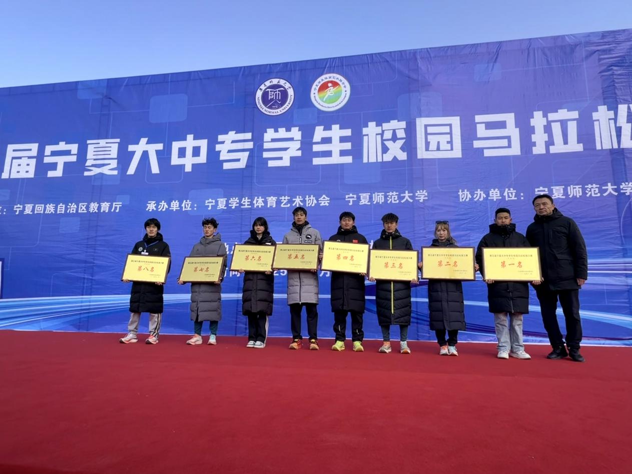 【宁夏大学新闻中心讯 体育学院】11月29日至30日,由自治区教育厅主办、宁夏学生体育艺术协会与宁夏师范大学联合承办的第五届宁夏大中专学生校园马拉松接力赛在宁夏师范大学鸣枪开跑。我校派出22名运动员参赛,最终揽获校园组第一名、专业组第四和第八名,并荣获“体育道德风尚奖”,实现竞技成绩与精神文明双丰收。