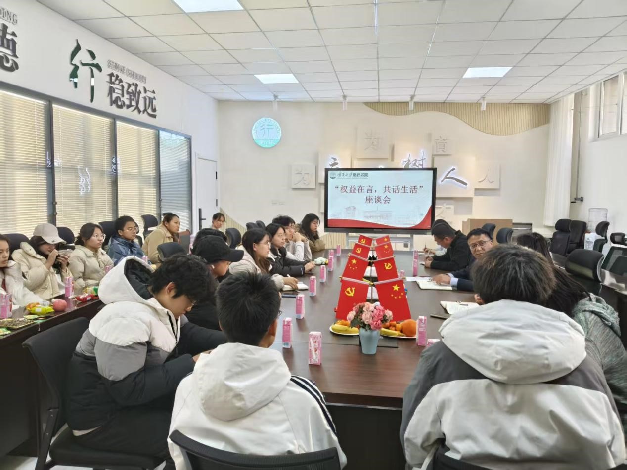 【宁夏大学新闻中心讯 励行书院】为切实倾听书院学子的生活诉求,解决宿舍生活中的实际问题,12月10日,励行书院在二楼会议室召开“权益在言,共话生活”宿舍长主题座谈会。书院党委书记、院长张强,书院党委委员、副院长王娜,学生事务管理中心主任周兴洋,书院团委负责教师、学生会秘书长谭颖与书院20余名宿舍长代表围绕多个同学们关心的宿舍话题展开深入交流。