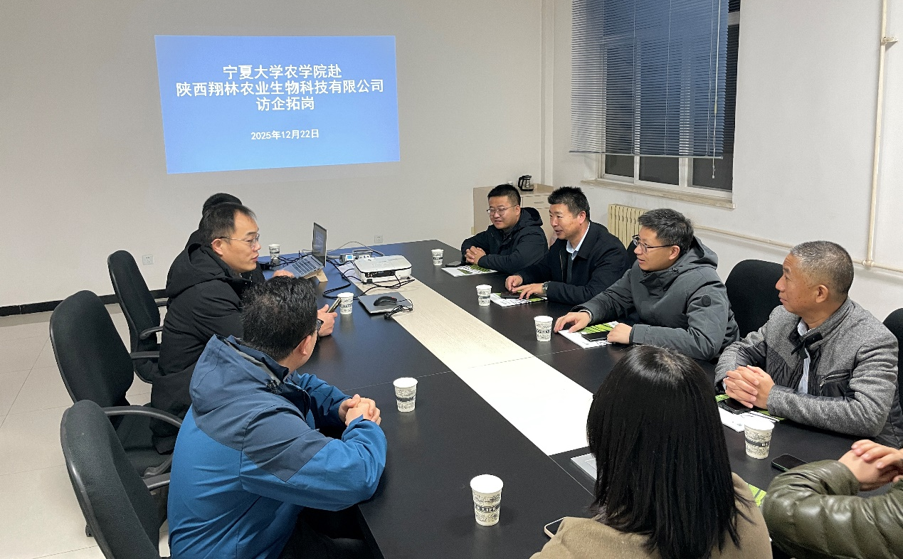 【宁夏大学新闻中心农学院】为精准对接“十五五”期间毕业生就业工作部署,扎实推进2026届毕业生就业服务提质增效,12月22日,农学院院长李培富率领学院班子成员及各系主任赴杨凌翔林农业生物科技有限公司开展访企拓岗专项活动,深入调研行业发展趋势,并看望学院2024届毕业生张爱军。